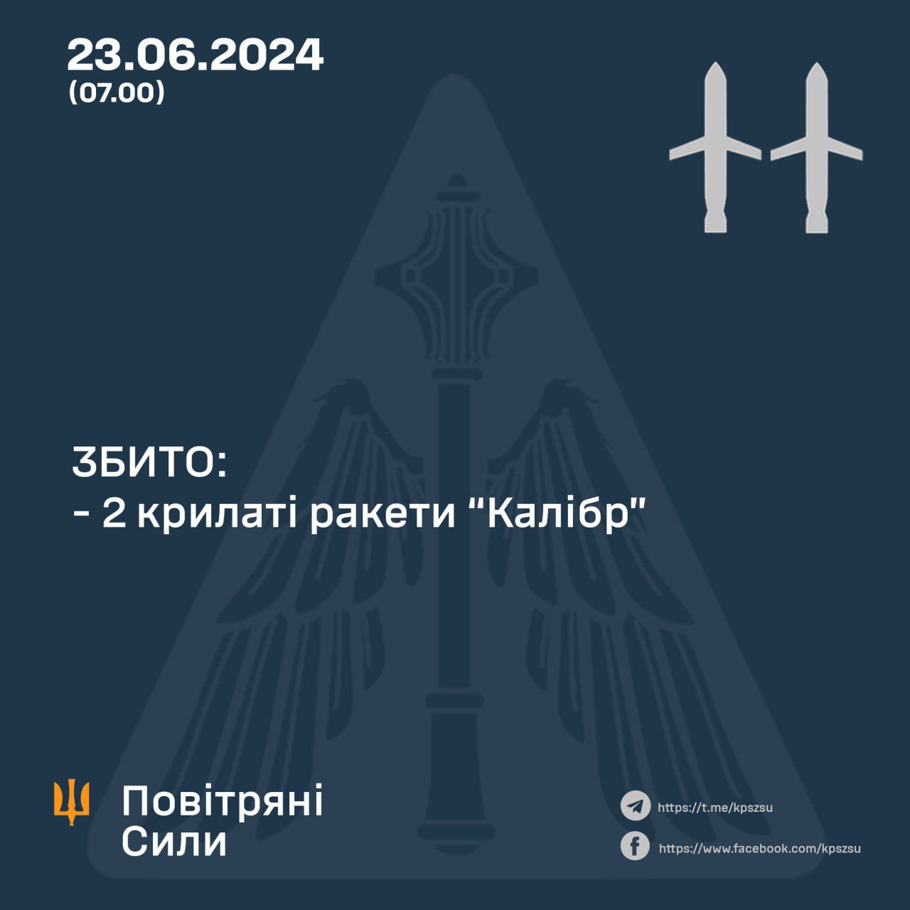 По данным ВСУ, были сбиты две из трёх ракет "Калибр", которые летели с юга.