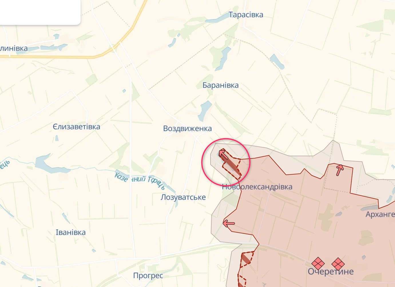 Сейчас россияне закрепляются на западных окраинах деревни, которая находится к северо-западу от Очеретино и в направлении трассы Покровск-Константиновка, которая важна для общей логистики ВСУ в Донецкой области.
