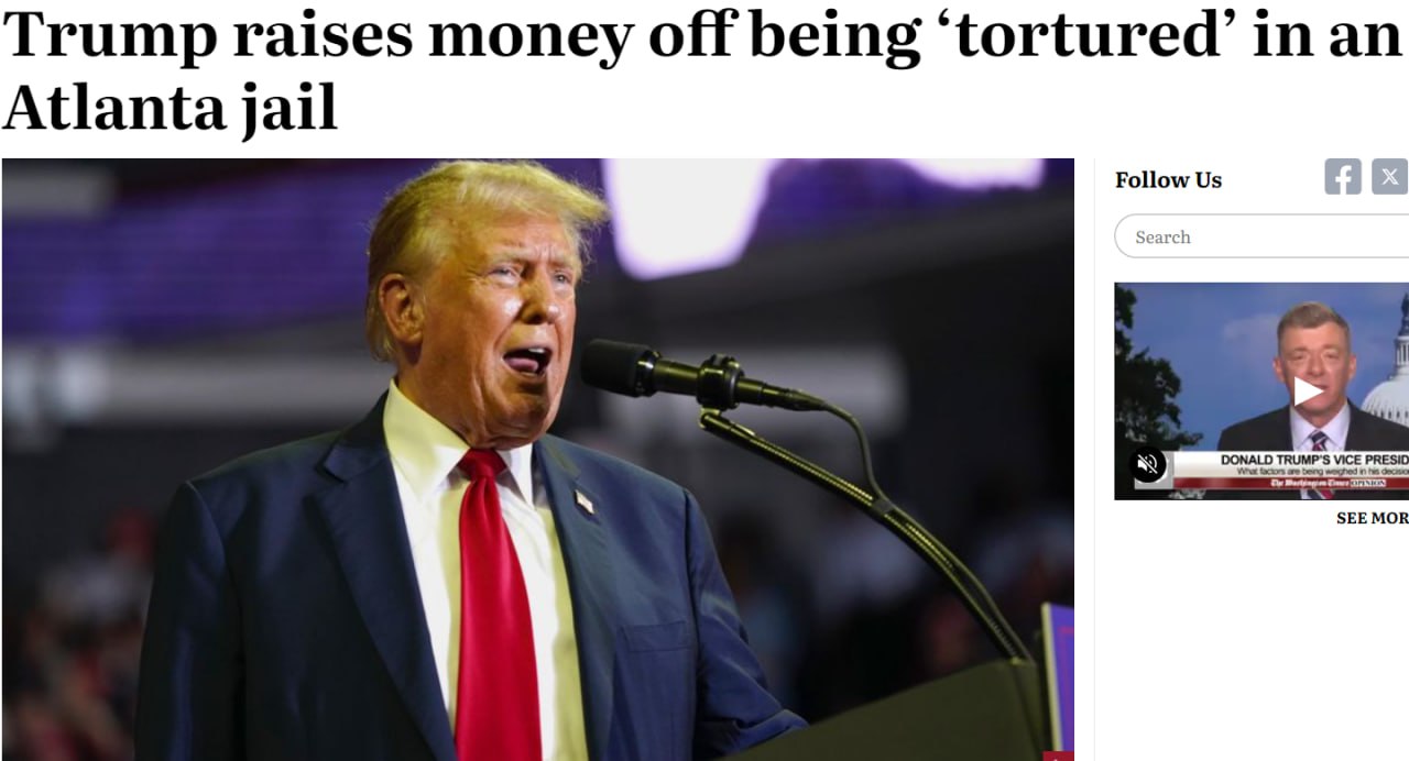 "Я хочу, чтобы вы помнили, что они со мной сделали. Они пытали меня в тюрьме в округе Фултон и сделали снимок для картотеки", – говорится в письме штаба Трампа сторонникам с целью сбора пожертвований на избирательную кампанию политика.