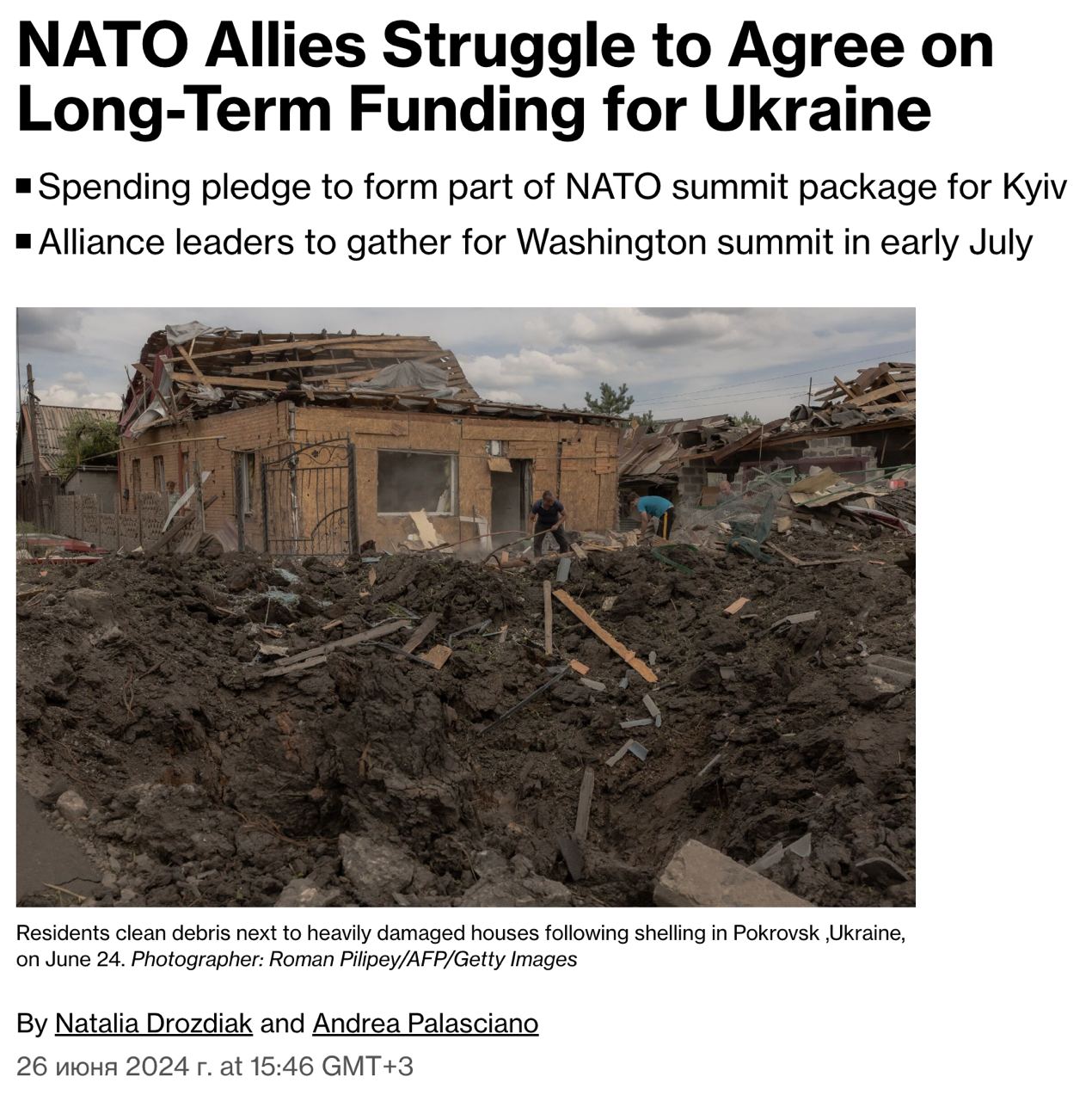 Некоторые страны НАТО отказываются брать на себя конкретные многолетние обязательства по расходам на военную помощь Украине из-за непредсказуемости ситуации на фронтах и отсутствия понимания, какая помощь понадобится Киеву в перспективе.
