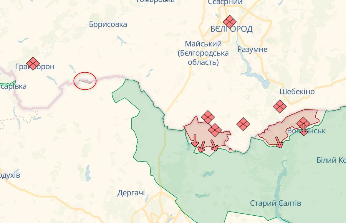 Этот участок находится существенно западнее нынешнего района боев на севере Харьковской области.
