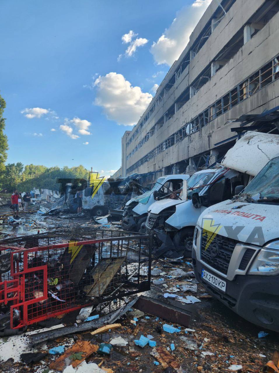 19:26 Фото и видео последствий прилёта по "Новой почте" в Харькове.