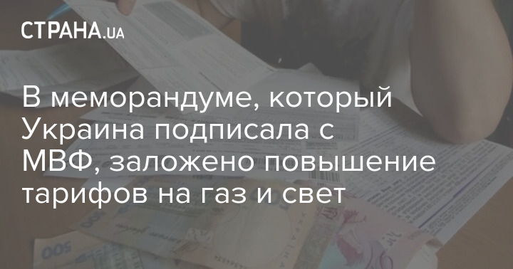 В меморандуме, который Украина подписала с Международным валютным фондом (МВФ), есть обязательство повысить тарифы на газ и свет.