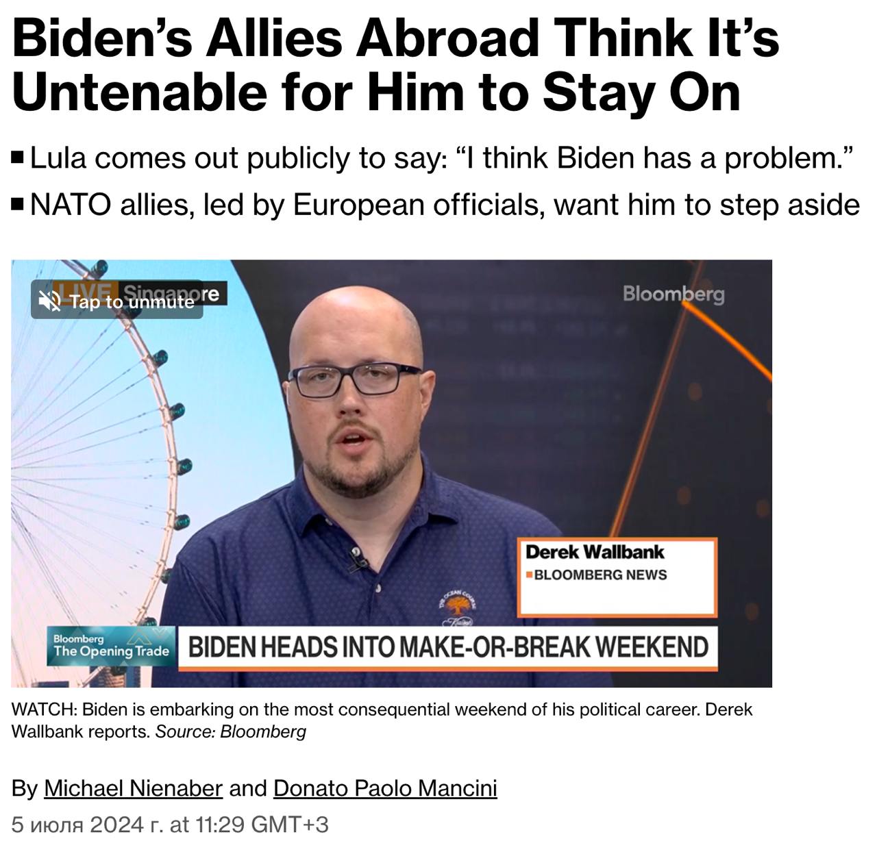 На днях СМИ сообщали, что главные спонсоры Демократической партии считают, что "кандидатура Байдена обречена". Доноры политсилы считают, что Байден просто откладывает вопрос выбора преемника, но он неизбежен.
