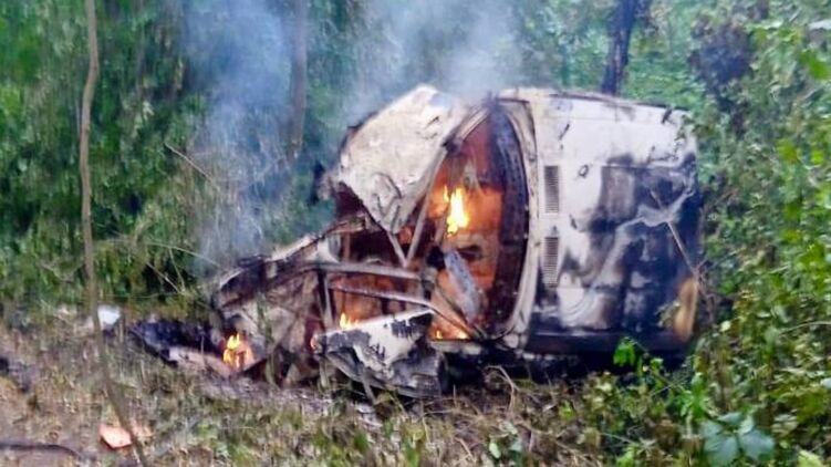 Последствия подрыва авто на мине под Харьковом. Фото: Telegram/synegubov