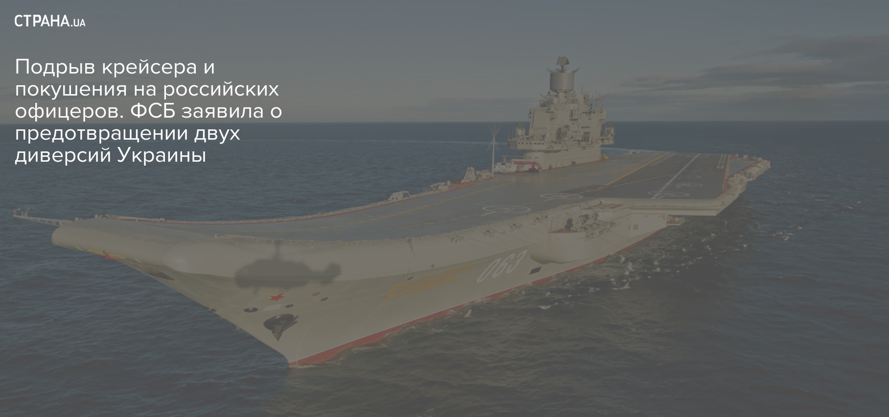Федеральная служба безопасности (ФСБ) России заявила о двух попытках диверсий Украины. В частности, была предотвращена попытка подрыва авианесущего крейсера "Адмирал Кузнецов" в Мурманске.