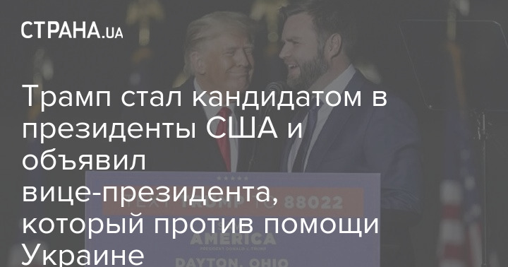 Ранее в понедельник Трамп объявил, что в случае если он победит на президентских выборах, то его вице-президентом станет сенатор от Огайо Джей Ди Венс, который выступает против помощи Украине.