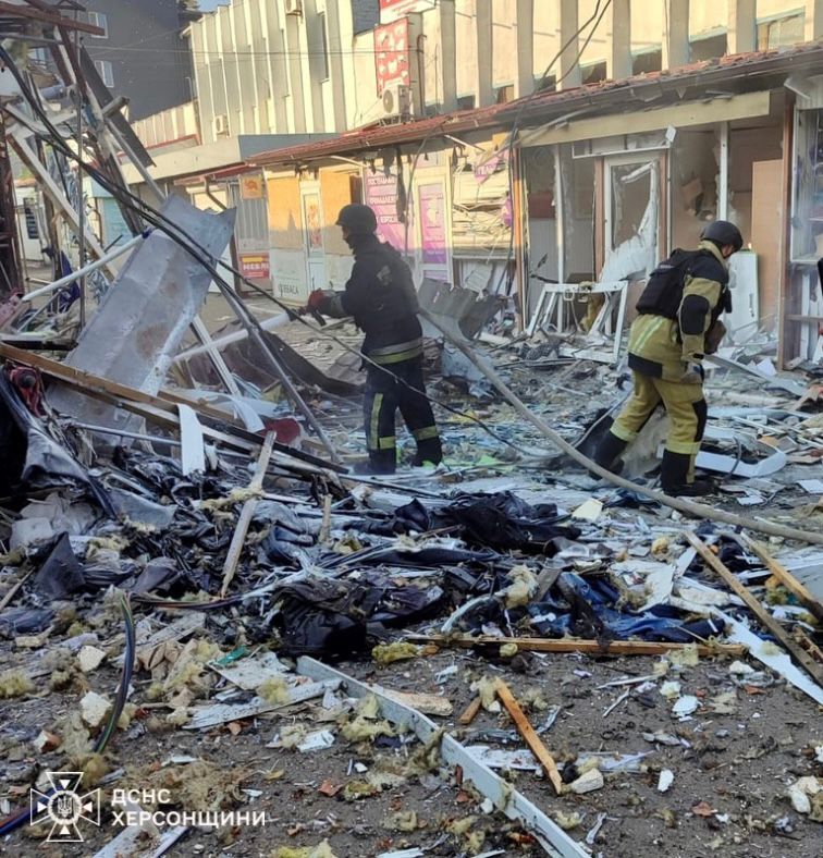 13.20 Последствия обстрела центра Херсона. Пострадали торговые киоски.