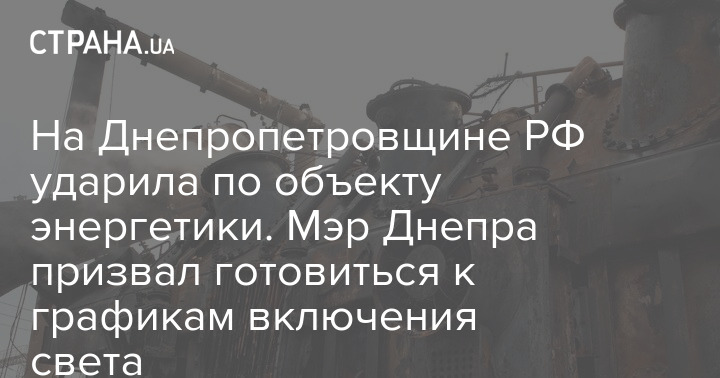 На Днепропетровщине РФ ударила по объекту энергетики. Мэр Днепра призвал готовиться к графикам включения света