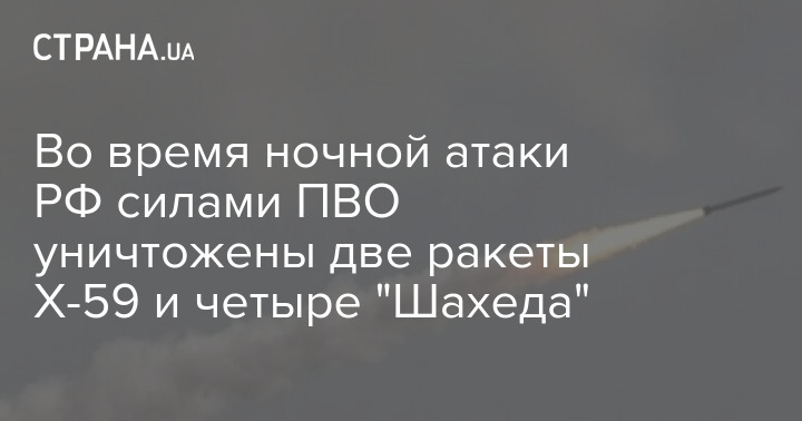 Силами ПВО были сбиты две управляемые авиационные ракеты Х-59 и 4 ударных БпЛА в Одесской, Херсонской и Кировоградской областях.