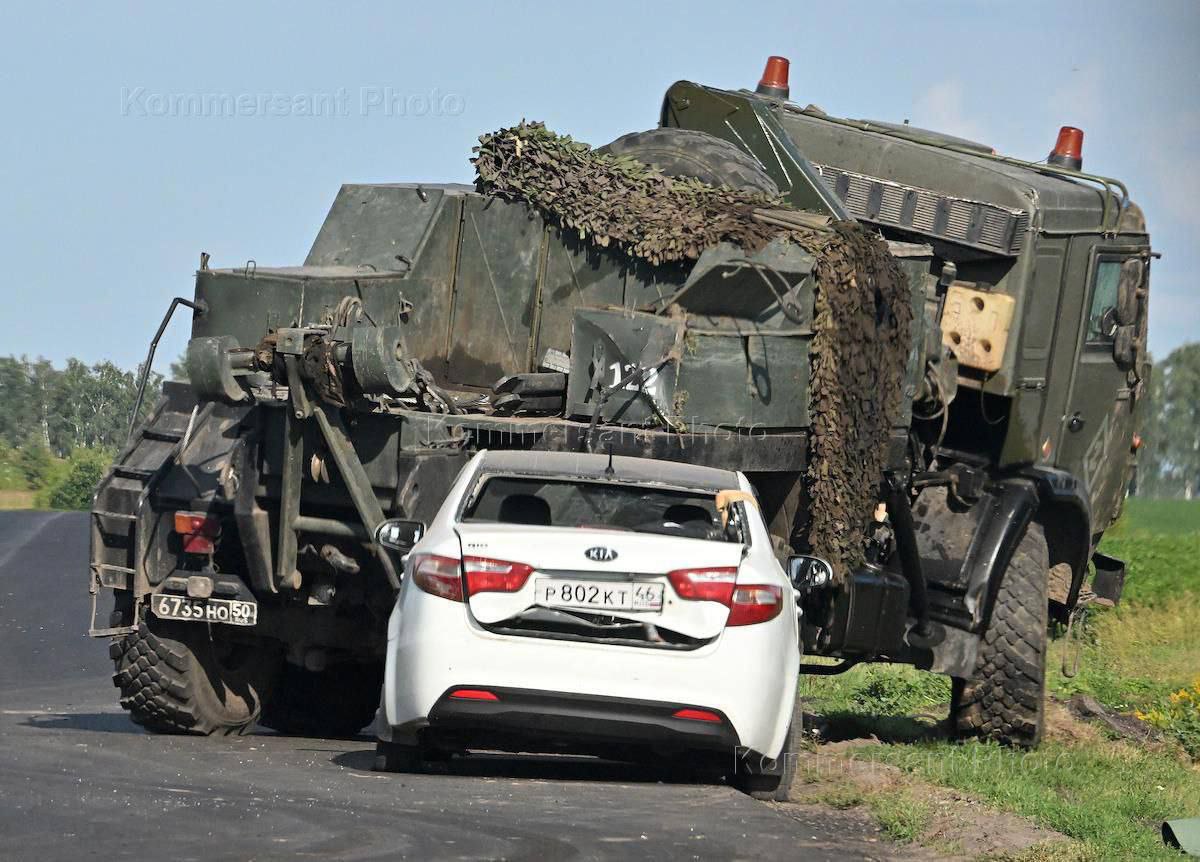Появились новые кадры разбитой военной колонны РФ в Курской области