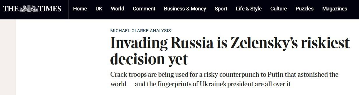 В публикации говорится, что Зеленский в течение нескольких месяцев в полной тайне давил на военное руководство, чтобы начать наступление. Сообщается, что Украина атаковала бы Россию, даже если бы не получила разрешение от Запада. Таким образом Киев хочет изменить нарратив о том, что "Украина проигрывает войну".