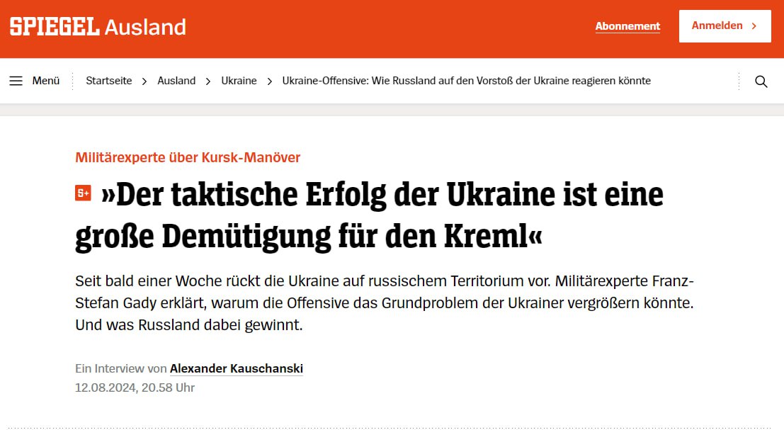 "Краткосрочные успехи могут обернуться поражениями в долгосрочной перспективе. Я спрашивал себя, чего должна была достичь эта операция. В долгосрочной перспективе расширение фронта было бы выгодно России, потому что у нее больше ресурсов, чем у Украины", – объяснил он.