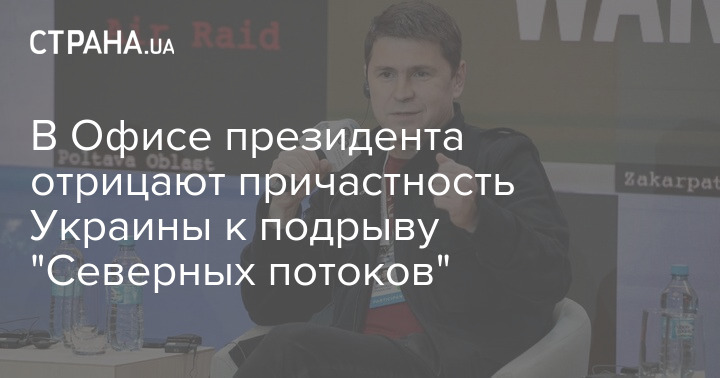 Советник главы Офиса президента Михаил Подоляк отрицает причастность Украины к подрыву "Северных потоков" и заявляет, что это сделала Россия.
