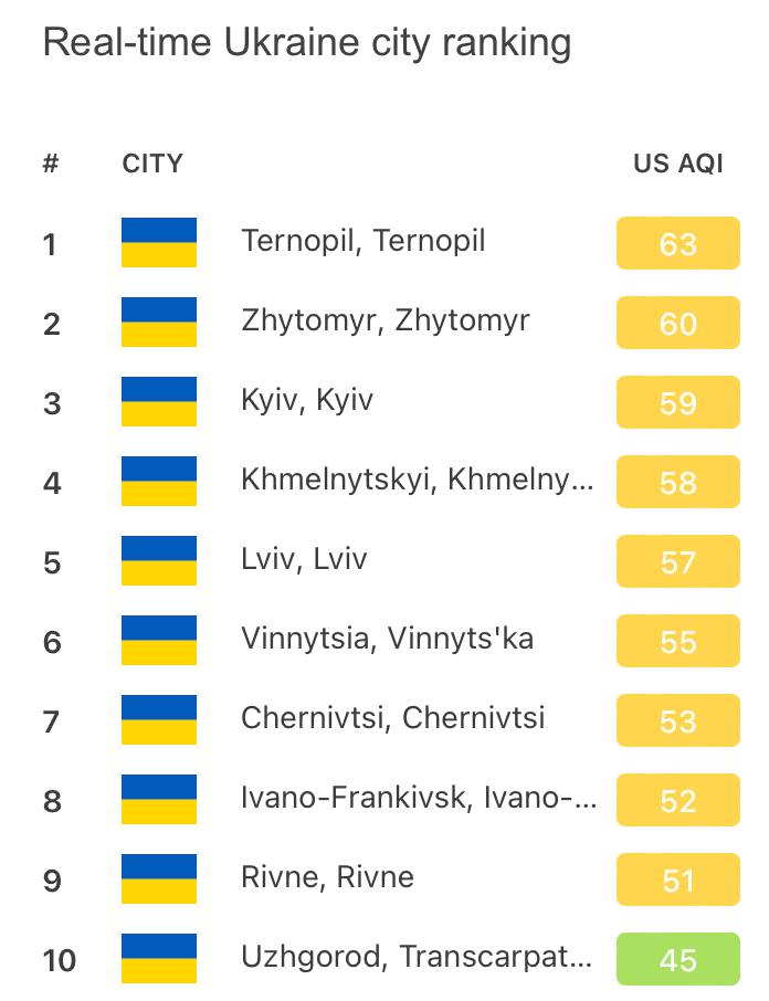 Утром в Тернополе после ночного прилета висит смог. Город сейчас поднялся на первое место по Украине по уровню загрязнения воздуха, о чем свидетельствуют данные сервиса IQAir. Концентрация вредных веществ в городе в настоящий момент в 3,1 раза превышает годовое значение ВОЗ по качеству воздуха.