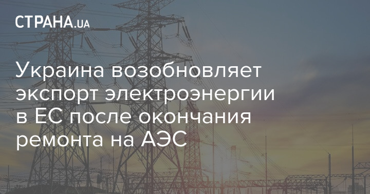 Украина возобновляет экспорт электроэнергии в ЕС после окончания ремонта на АЭС