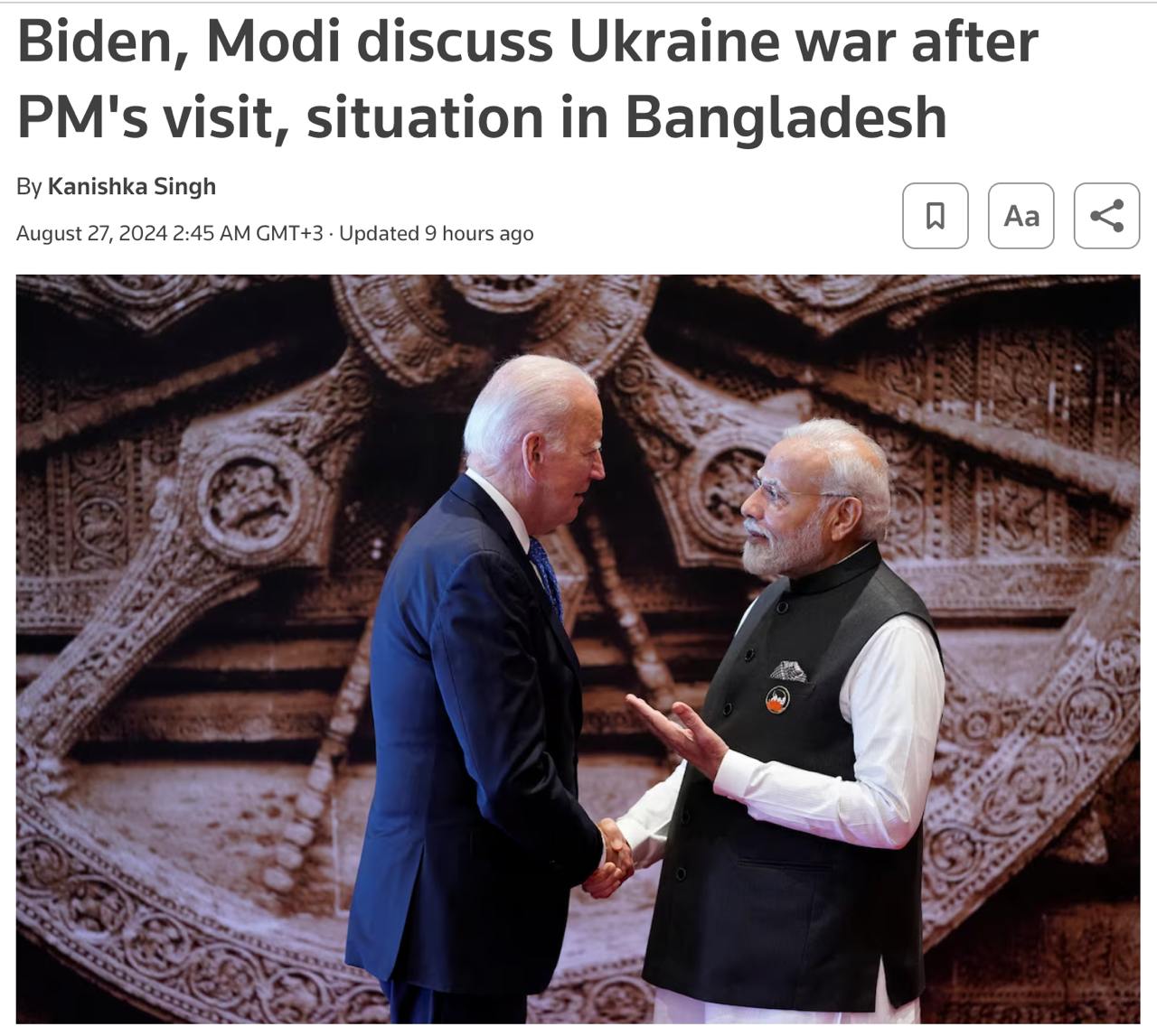 Напомним, на прошлой неделе Моди посетил Киев и встретился с президентом Украины. Он призвал РФ и Украину к переговорам.