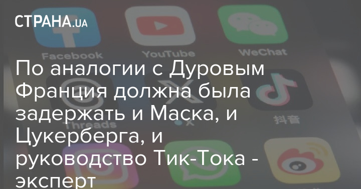 По аналогии с Дуровым Франция должна была задержать и Маска, и Цукерберга, и руководство Тик-Тока - эксперт
