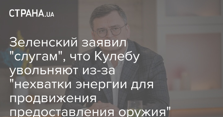 Президент Украины Владимир Зеленский заявил, что главу МИД Дмитрия Кулебу увольняют, потому что ему "не хватает энергии для продвижения предоставления оружия".