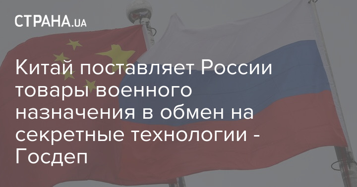 Китай поставляет России товары военного назначения в обмен на секретные технологии - Госдеп