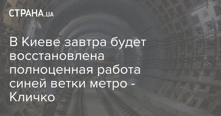 В Киеве завтра, 12 сентбря, будет восстановлена полноценная работа синей ветки метро. Об этом сообщает мэр столицы Виталий Кличко.