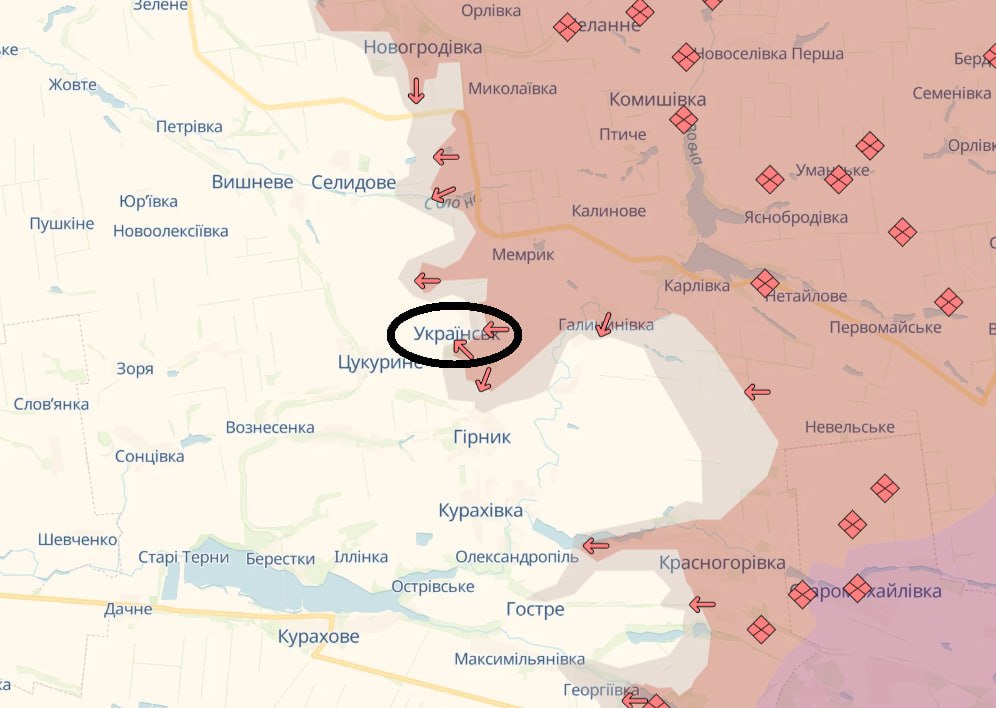 Об этом пишет ресурс Deep State, подтверждая вчерашние заявления украинских военных. Атака на Острое ставит под угрозу укрепрайон ВСУ в Георгиевке и Максимилиановке, которые прикрывают с востока Курахово.