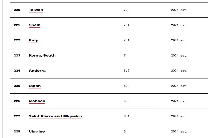 Показатель рождаемости в Украине составляет 6 на 1000 человек. Следом за ней идут Сен-Пьер и Микелон, Монако, Япония, Андорра и Южная Корея.