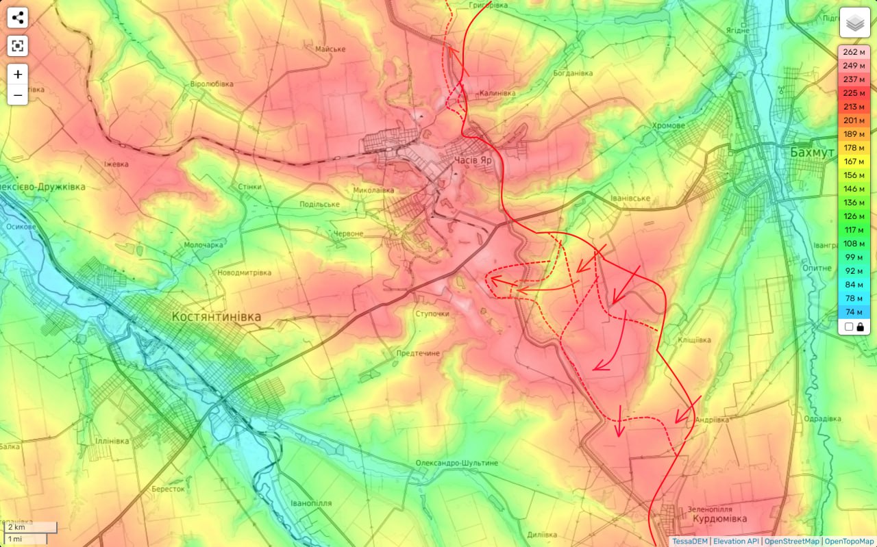 Российские паблики с утра пишут о том, что россияне продвинулись к югу от Часова Яра - в сторону Ступочек, перейдя канал Северский Донец - Донбасс. Украина этого не подтверждала. При этом с 8 по 11 сентября военный паблик Deep State показывал на своей карте расширение "серой зоны" в этом районе - со стороны Клещеевки. Россияне также ранее утверждали, что серьезно продвинулись в районе Клещеевки, взяв под контроль ключевые высоты на восточном берегу канала Северский Донец - Донбасс.