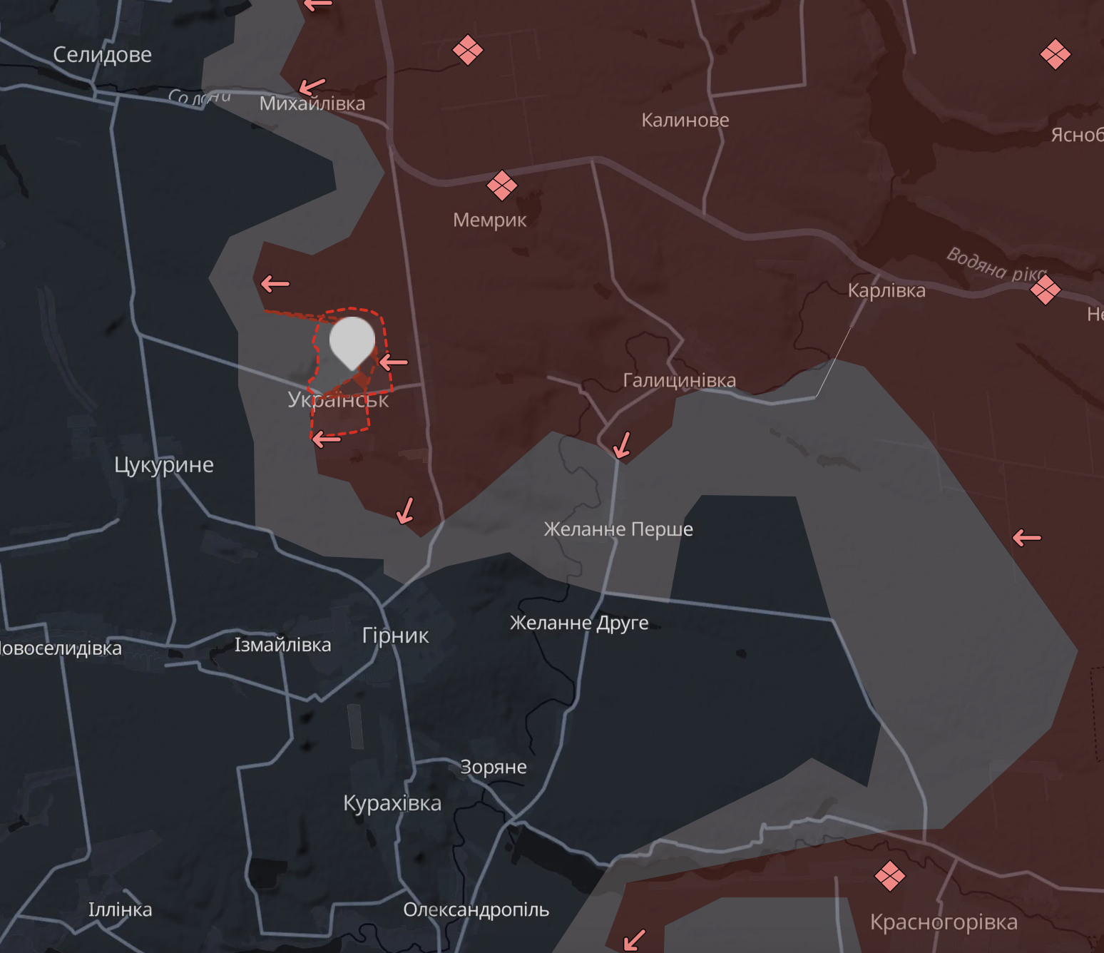 Они захватили большую часть города Украинск, судя по карте военного паблика Deep State. В серой зоне остается только северо-западная часть Украинска (российские телеграм-каналы пишут о захвате всего города, но подтверждений этому пока нет). Параллельно российские войска пытаются зайти к югу от Селидово, перерезав дорогу на Цукурино.
