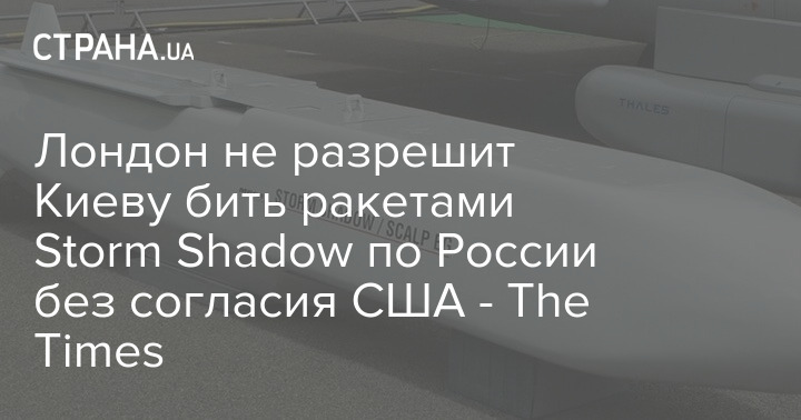 Великобритания не позволит Украине применять ракеты Storm Shadow по целям в России без согласия США.