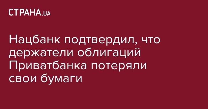 Нацбанк сообщил, что держатели еврооблигаций потеряли свои бумаги. Регулятор информирует, что "Приватбанк" имел в обращении следующие выпуски облигаций: на сумму $175 млн по ставке 10,875% с погашением 28 февраля 2018 года, на сумму $200 млн долларов по ставке 10,25% с погашением 23 января 2018 года, на сумму $220 млн долларов по ставке 11% с погашением в 2021 году (облигации субординированного долга).