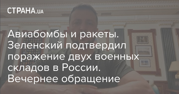 Авиабомбы и ракеты. Зеленский подтвердил поражение двух военных складов в России. Вечернее обращение