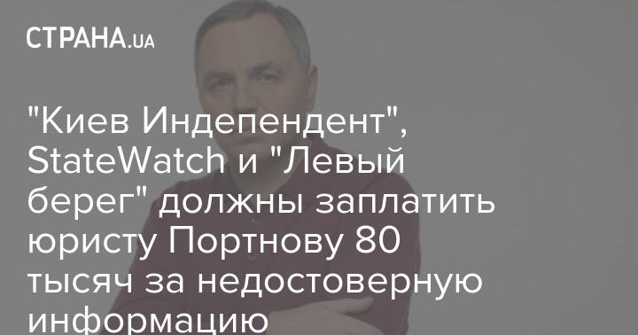 Интернет-издания The Kyiv Independent, StatеWatch и "Левый берег" должны заплатить юристу Андрею Портнову 80 тысяч гривен.