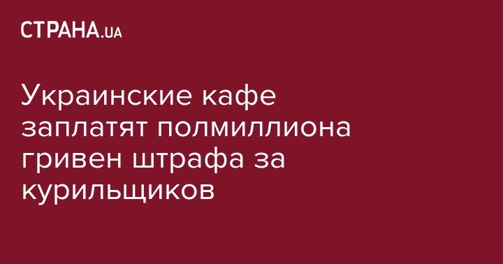Украинские кафе и рестораны за 2016 год получили штрафов почти на 480 тыс. гривен от Госпродпотребслужбы за нарушение закона о запрете курения. Об этом сообщила и.о. заместителя главы службы Лилия Стиренко, передает ВВС.