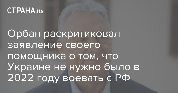 Орбан раскритиковал заявление своего помощника о том, что Украине не нужно было в 2022 году воевать с РФ