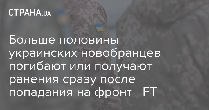 Вооружённые силы Украины (ВСУ) теряют убитыми или ранеными более половины новобранцев сразу после попадания на фронт, сообщает Financial Times.