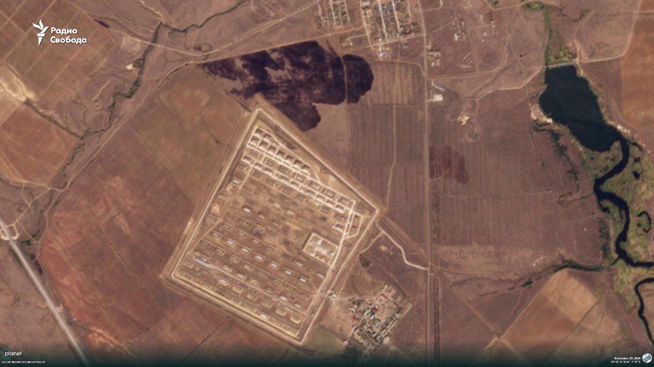 След от пожара после удара виден рядом с арсеналом Главного ракетно-артиллерийского управления в Котлубани. Но на территорию склада боеприпасов огонь не распространился.
