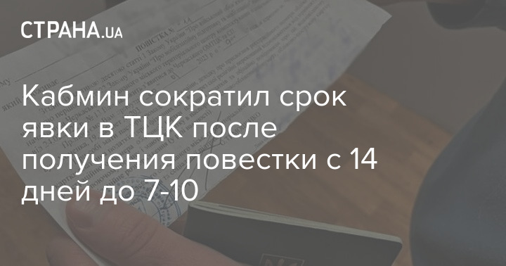 Кабинет министров сократил срок явки в ТЦК по выписанной военкомами повестке с 14 дней до семи-десяти.