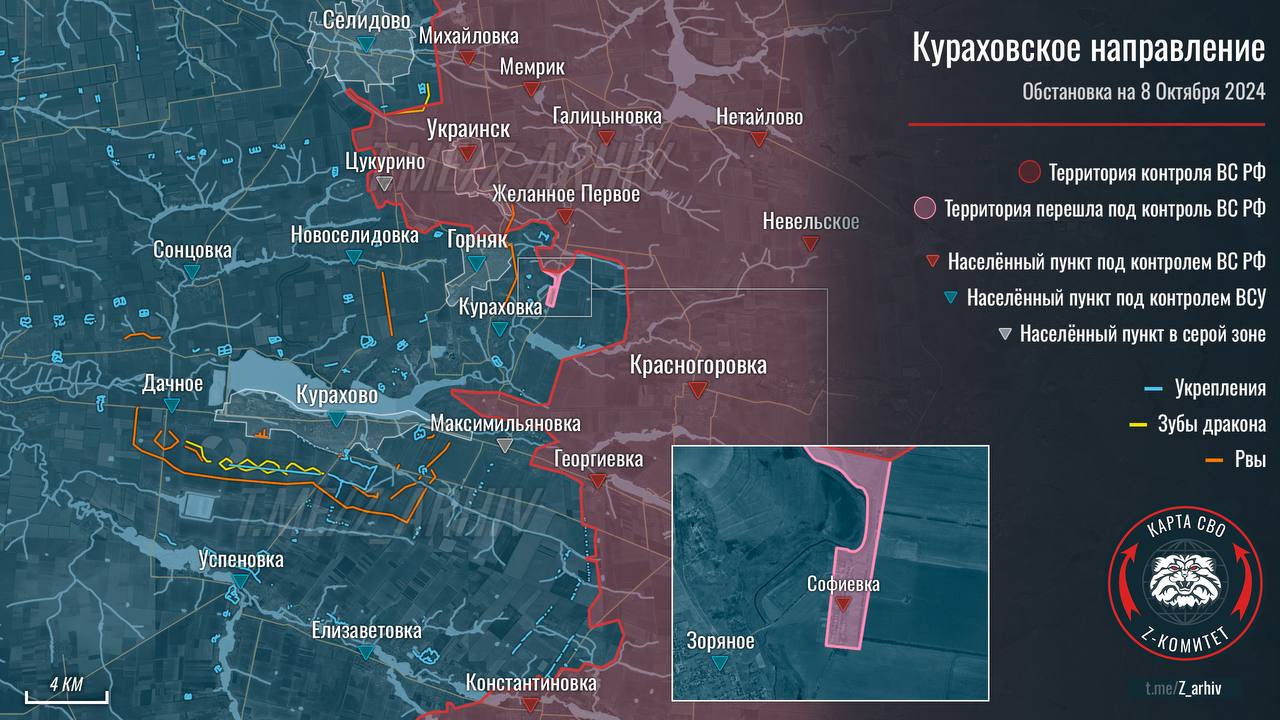 При этом минобороны России заявило сегодня о захвате села Зоряное Первое в Донецкой области. На картах такого населенного пункта нет, однако есть просто Зоряное в районе Кураховки. Российские паблики уже отметили это село как подконтрольное РФ.