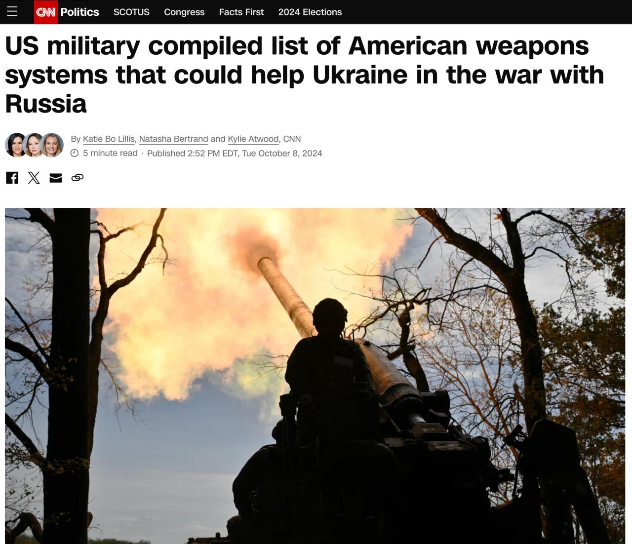 11.19 Главнокомандующий американской армии в Европе Крис Каволи передал Конгрессу список оружия, которое есть у США, но еще не было передано Украине, хотя могло бы ей помочь, пишет CNN со ссылкой на источники.
