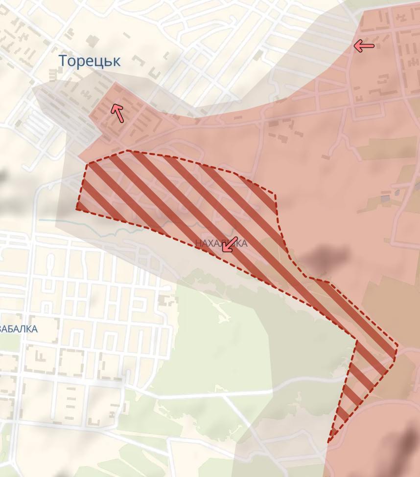Второе направление - Торецк. Там российские войска продвинулись в центре города и южнее захватили микрорайон "Нахаловка".