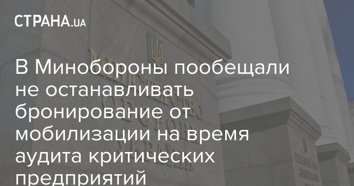 В Министерстве обороны Украины заявили, что на время аудита критических предприятий бронирование работников приостанавливать не будут.