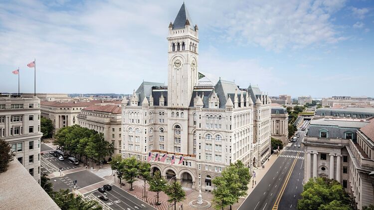 The Trump International Hotel был расположен в здании бывшего почтамта в центре Вашингтона. В 2022 году Трамп продал пятизвездочный отель и теперь он работает под брендом Waldorf Astoria, входящим в сеть отелей Hilton.