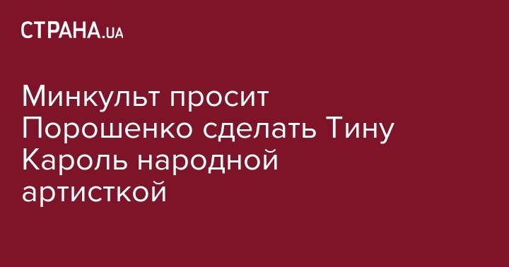 Министр культуры Евгений Нищук подал Петру Порошенко ходатайство о присвоении звания народной артистки Тине Кароль. Об этом сообщает Укринформ.