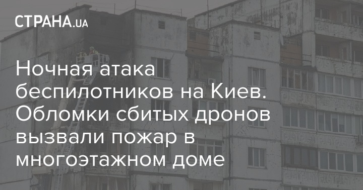Ночная атака беспилотников на Киев. Обломки сбитых дронов вызвали пожар в многоэтажном доме