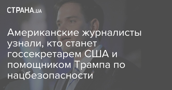 Госсекретарем США при победившем на выборах президента Дональде Трампе станет сенатор Марко Рубио. А помощником президента по нацбезопасности - конгрессмен Майк Уолтц (оба республиканцы от Флориды).