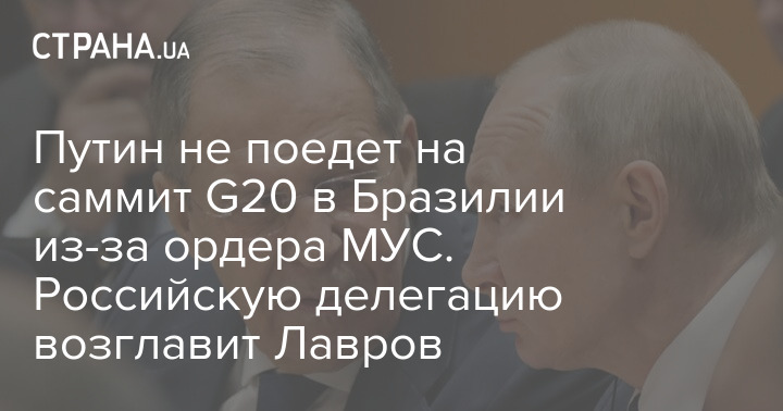 Путин не поедет на саммит G20 в Бразилии из-за ордера МУС. Российскую делегацию возглавит Лавров