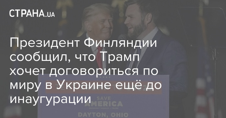 Президент Финляндии сообщил, что Трамп хочет договориться по миру в Украине ещё до инаугурации