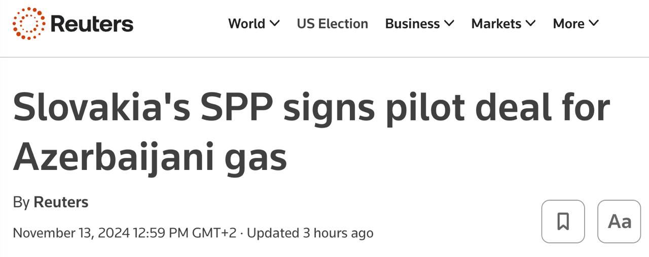 Основной покупатель газа в Словакии компания SPP подписала краткосрочный пилотный контракт на закупку природного газа из Азербайджана и рассмотрит возможность заключения более долгосрочной сделки, поскольку готовится к возможному прекращению поставок российского газа через Украину