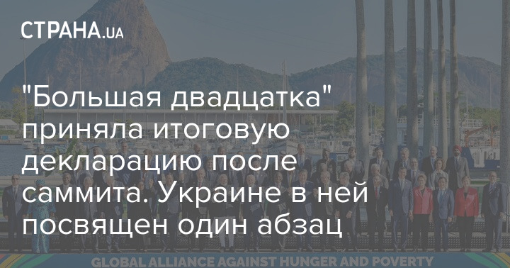 Опубликована итоговая декларация саммита "Большой двадцатки" (G20), который начался вчера в Рио-де-Жанейро и завершился сегодня.